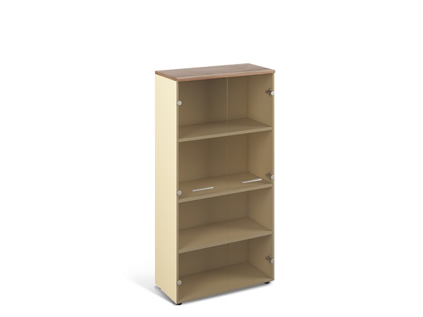 Офісна шафа для документів на 4 полиці, задня стінка ДСП, фасад - скляний тонований сірого відтінку. Сучасний дизайн і контрастні кольори шафи нададуть офісу ошатного вигляду.