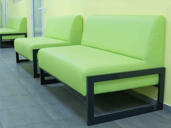 Диван з металевим каркасом КВАДРО у сучасному стилі Лофт - універсальне рішення для зон очікування в офісах та різноманітних установах. Диван застосовується для офісних рецепцій, навчальних закладів, лікарень, банків, кафе, ресторанів тощо. Диван Квадро розрахований для розміщення двох людей, має комфортну посадку і не потребує спеціального догляду. В якості оббивки пропонуємо великий вибір екошкіри, велюрів та інших тканин. Металевий каркас може бути чорного, білого або сірого кольору.